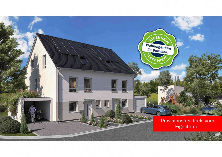 Die Häuser werden in massiver Bauweise errichtet und erhalten eine hochwertige Wärmedämmung. Eine Heizungsanlage mit Luft-Wasser-Wärmepumpe sorgt für effiziente und emissionsfreie Wärmeversorgung. Optional ist eine Photovoltaikanlage zur Eigenstromerzeugung möglich. Dreifach verglaste Fenster mit modernem Wärmeschutz unterstützen zusätzlich die Energieeffizienz des Gebäudes.