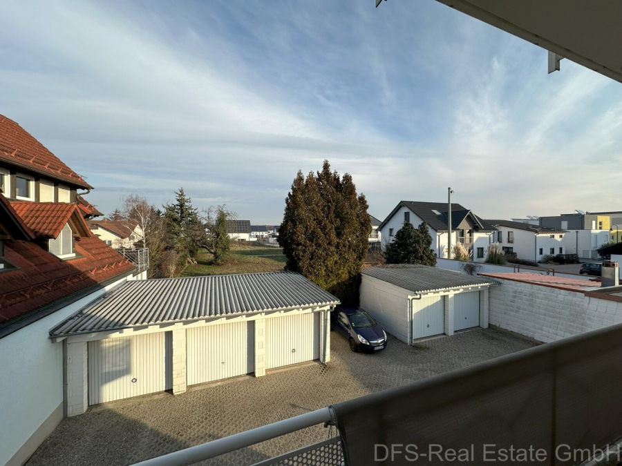 Besonders angenehm und vielseitig nutzbar ist der große Balkon von dem Sie einen freien Blick ins Grüne haben und der sowohl vom Wohn-/Esszimmer als auch vom Schlafzimmer begehbar ist.